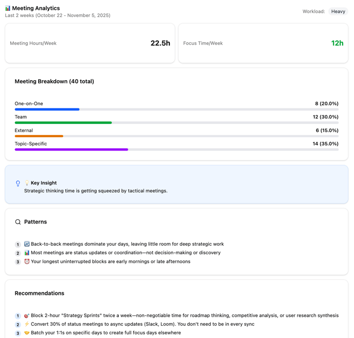 You can now analyze your calendar right in the Kairos Web App. See what’s working, what’s not, and get simple steps to fix it. Cut redundant meetings. Get more focus time.