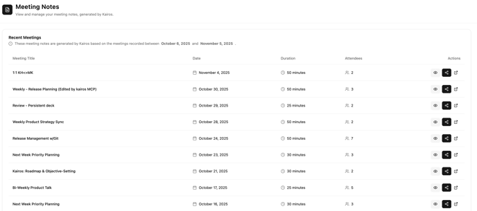 You can now create meetings directly in chat. Just ask Kairos to set one up for you.